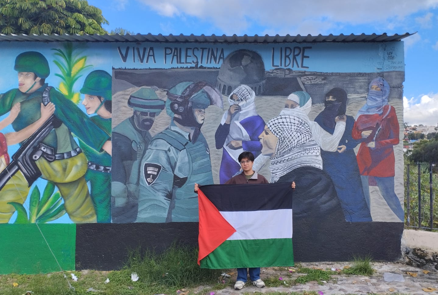 In October 2024, San Miguel por Palestina had our first artistic and cultural project to continue speaking about Palestine and to raise our voices in favor of the liberation of the Palestinian people and against the genocide being committed in Palestine. This year, in our second event, we had a message from the ambassador in Palestinian Embassy in Mexico, Nadya Rasheed. We had music by Xochipitzahua and dance by Elena Arteaga McGuire. We thank these groups for visiting us from Salamanca. We unveiled the mural "Long Live the Peoples Who Resist," created by the UDC collective, a local group of young artists. There was also an information table and donation boxes for various pro-Palestine organizations and Palestinian families.